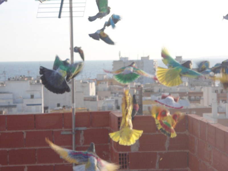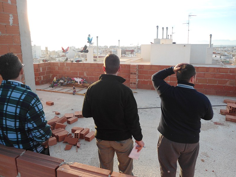 La primera paloma que voló fue la del Tiro al Pichón que fue cambiada por los jueces Dominguín y Andrés a los 2 minutos de comenzada la suelta porque no quiso volar. En su lugar salió otra magaña, La Gitanica, que voló por varias terrazas del Parque de la Cruz. Finalmente paró en una obra en construcción donde sólo perdieron puntos 15 palomos.